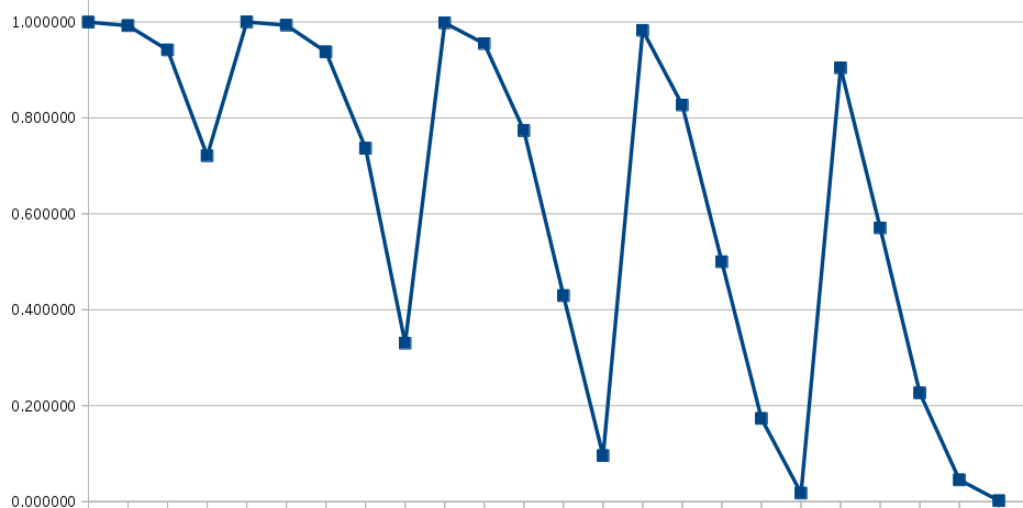 That was not owen88’s only contribution to the discussion. Despite my confusing miscommunication at one point owen88 produced about the prettiest looking graph I’ve seen for these values and observed that sets of probabilities grouped closely together. That observation would prove vital later on.
